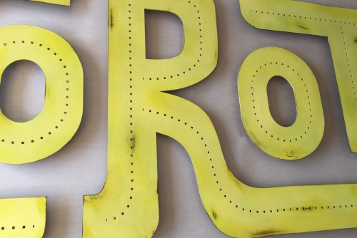 Els cartells d’estil tipo Oxydum estan construïts amb passamà de ferro de 20×4 mm i 30×4 mm o si és petit, en passamà de 14x4mm i 20×4. És una tipografia creada al nostre taller, molt autèntica i original. Combinem majúscules i minúscules i habitualment pintem parts de les lletres creant un conjunt artístic. Les lletres van soldades entre sí.